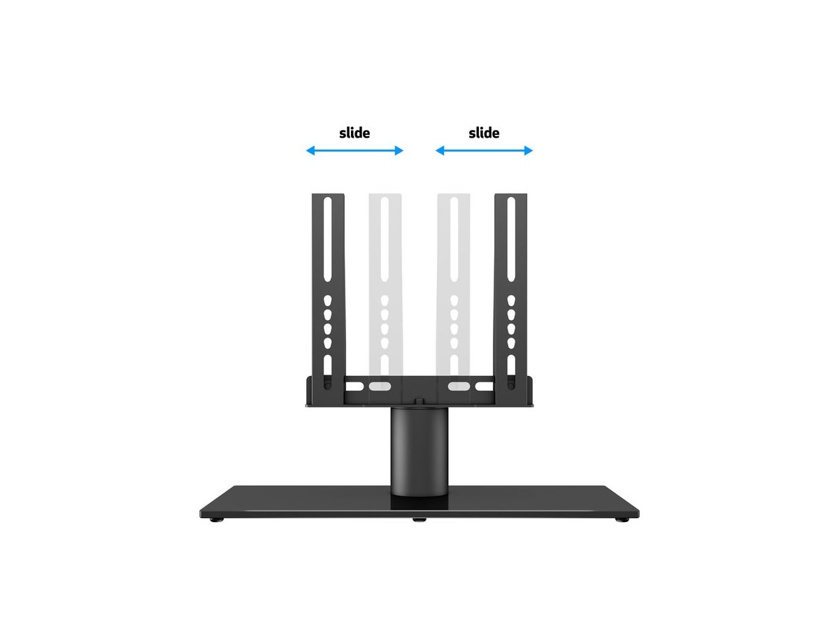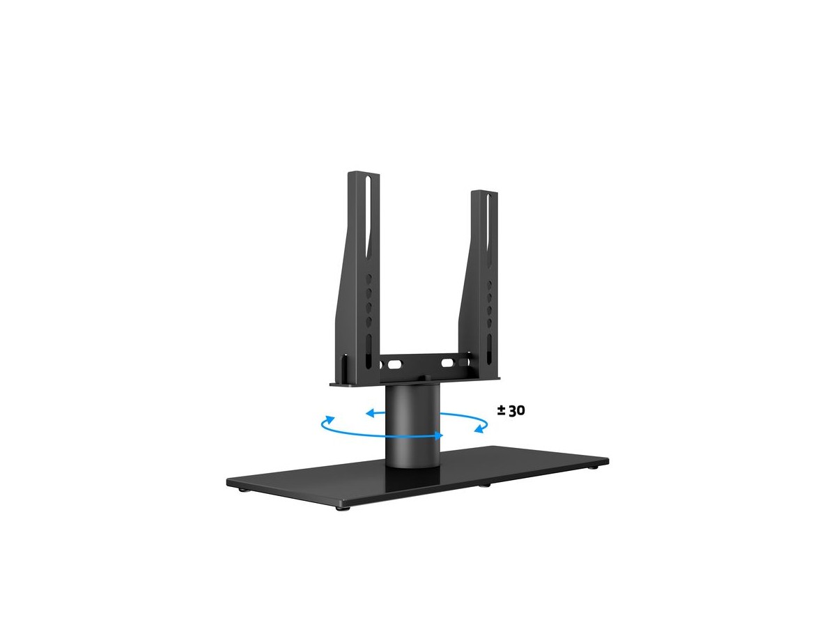 Perfectly placed on a table or media furniture, it has a sophisticated built in left and right turn feature inside its tubular pillar. The M VESA Tablestand turns your TV screen up to 30 degrees, left or right. This allows you to watch your TV in an optimal angle from your TV sofa, kitchen, favorite comfy chair or anywhere else the turned reaches its viewing angle. The M VESA Tablestand Turn optimizes your TV angle, it makes the most out of your living room setting and can create a smooth functionality for your home or office environment.