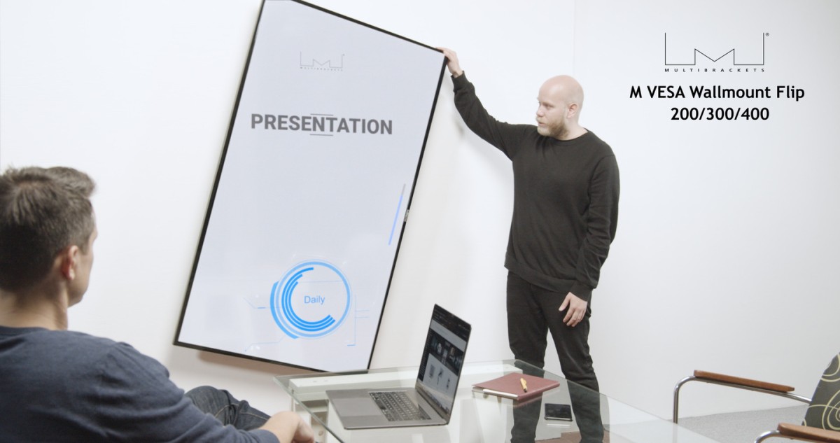 Multibrackets Flip 200/300/400 is a fully rotational wallmount that we designed to support the features and functionality of any screen that has the need of rotation in landscape and portrait. With market leading rotation function and the possibility to an instant change if needed. The mounts rotational interface allows the user to easily rotate the display 90° from landscape to portrait, and can also hold the display at a negative or positive tilt 5° to further promote ergonomics with a more natural angled writing surface.