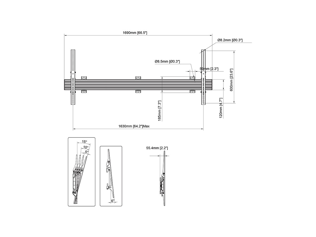 Product code:M Wallmount Pro LG 110UM5J Tilt Black - Wall mount for LCD display, steel, 1 screen, single side, fixed, VESA Max 1600x600 - screen size: 110" Stretched - black