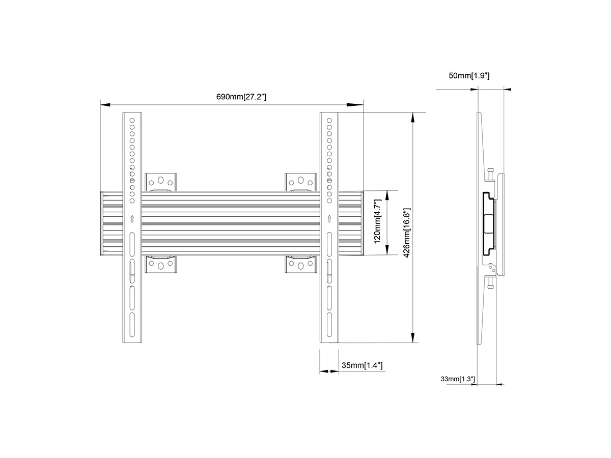 | Universal & VESA standard: | Adjustable from 100x100 to 600x400 max Optional VESA 800x600 |