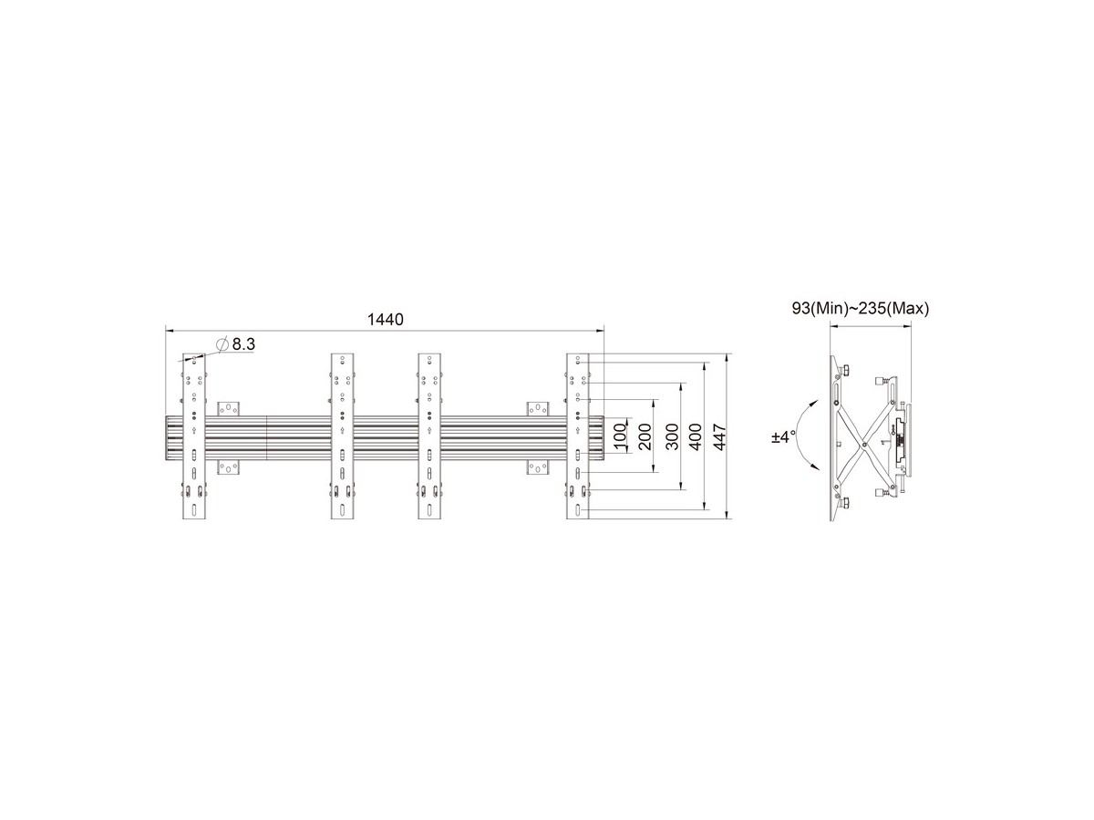 | Universal & VESA standard: | 100x100,200x100, 200x200,300x300,400x200,400x400 |