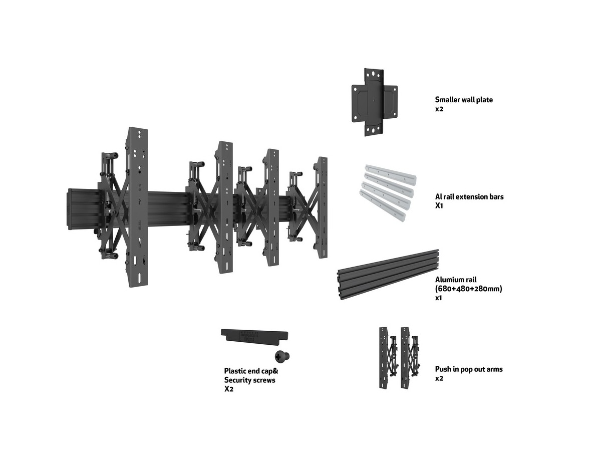 Multibrackets 7350073735020 M Wallmount Pro MBW2x1UP Push In Pop Out Black