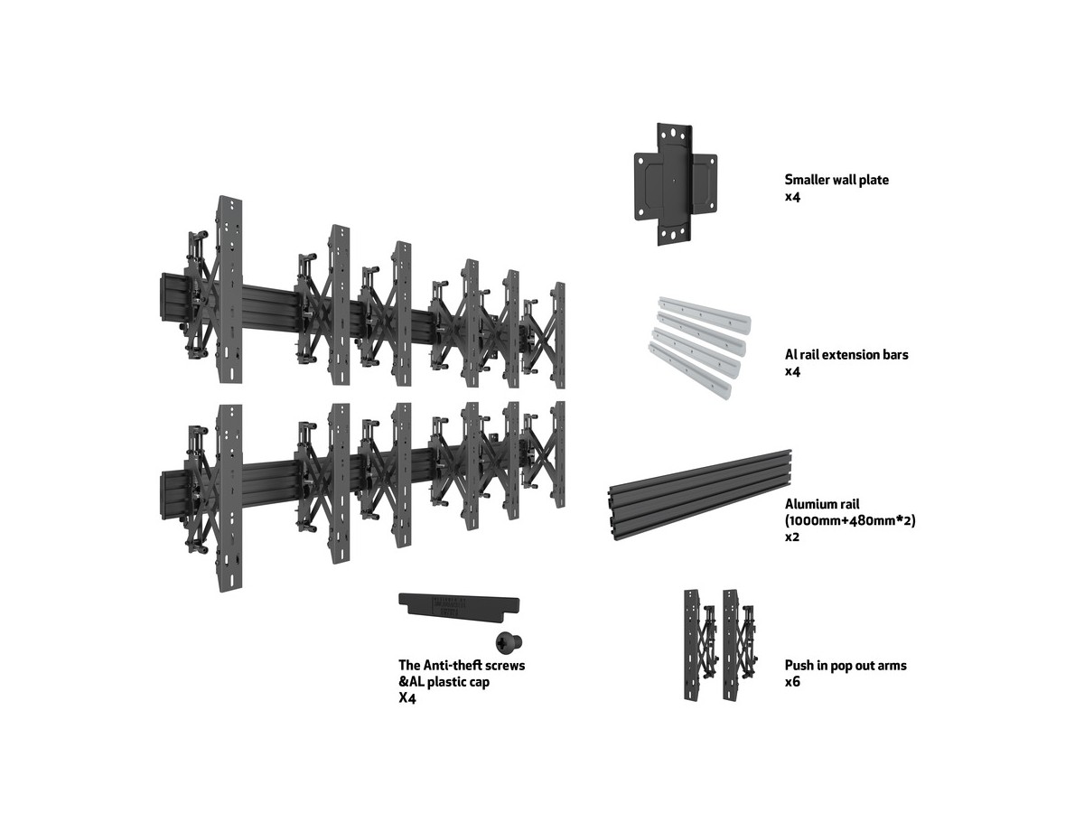 Product code:M Wallmount Pro MBW3x2U Push In Pop Out Black - Wall mount for LCD display, steel, 6 screens, single side, adjustable, VESA Max 400x400 - screen size: 32"-55" - portrait - black