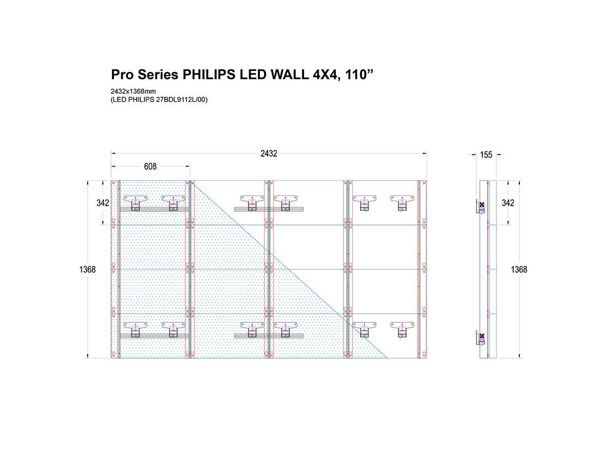 Product code:Pro Series PHILIPS LED WALL 4X4, 110” PHILIPS 27BDL9112L/00 - Wall mount for LED panel – Aluminum – Fine tune adjustment – Mounting depth: 30mm