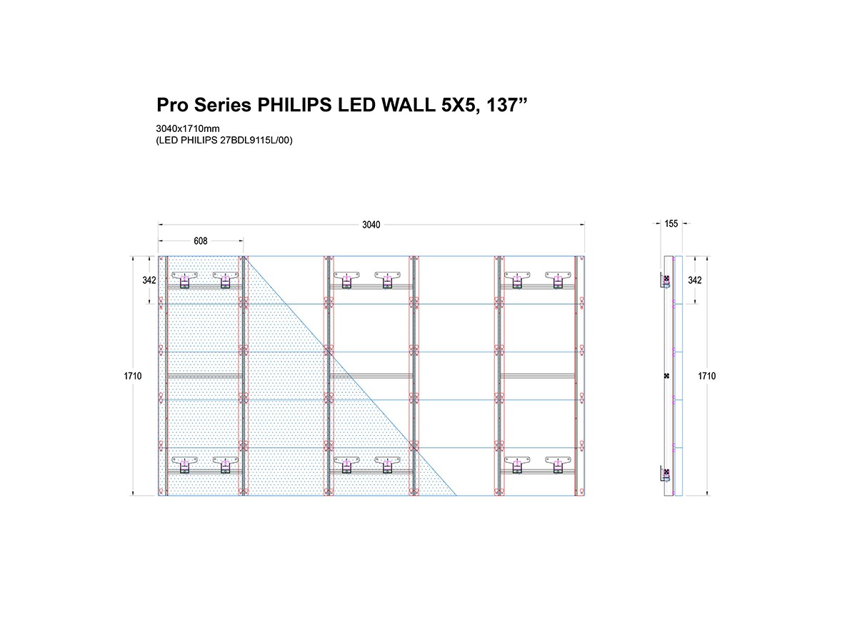 Product code:Pro Series PHILIPS LED WALL 5X5, 137” PHILIPS 27BDL9115L/00 - Wall mount for LED panel – Aluminum – Fine tune adjustment – Mounting depth: 30mm
