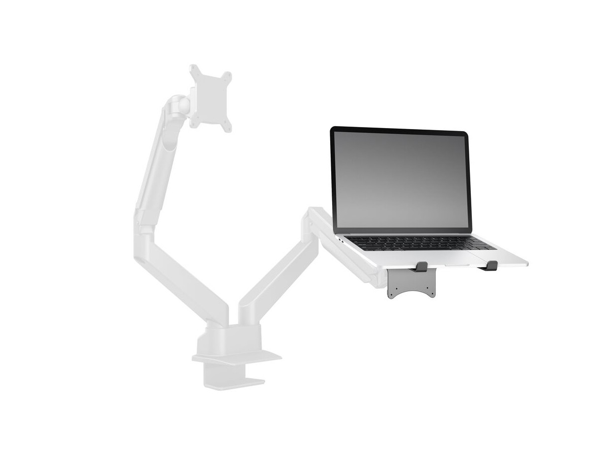 This unique holder consists of a VESA based centerpiece and its connected holding arms that gently grab your laptop. The M Laptop Holder Gas Lift Arm is VESA compatible, so it can be mounted onto almost any VESA specified wallmount, arm or desktopmount. However this laptop holder is designed to work with M VESA Gas Lift Arm.