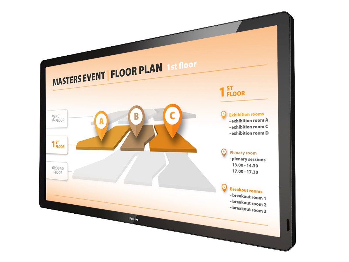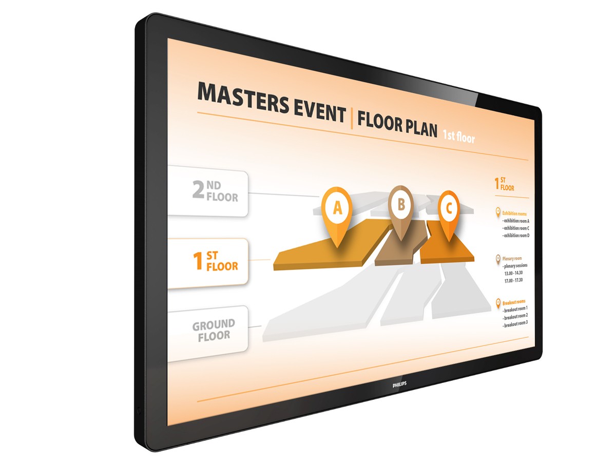 Product code:Inspire collaboration. Deliver information. This responsive Philips Multi-Touch Professional Full HD Display is ideal for multi-finger, multi-user applications, from wayfinding to presentations. Up to 10 touch points can be active at once.